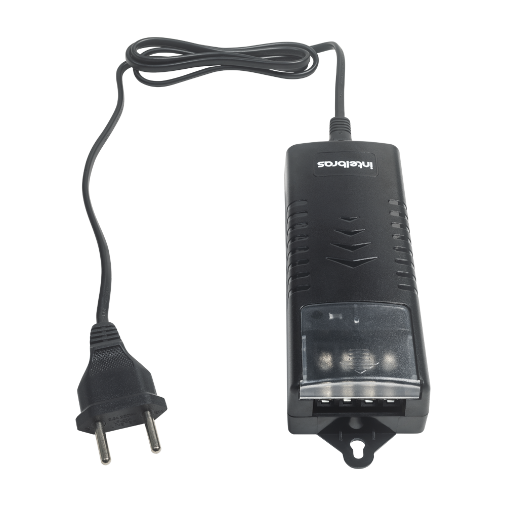 EFM 1205 G2. Fonte de alimentação AC/DC 12 V 5 A. A fonte EFM 1205 G2 é projetada para dispositivos 12 V com consumo de até 5 A. Ela possui proteção contra curto-circuito e sobrecarga, prevenindo danos decorrentes de avarias elétricas, e contra sobretensão, para evitar ou minimizar problemas causados por descargas atmosféricas ou manobras da rede de distribuição elétrica. Além disso, possui filtro contra ruídos e interferências na imagem.